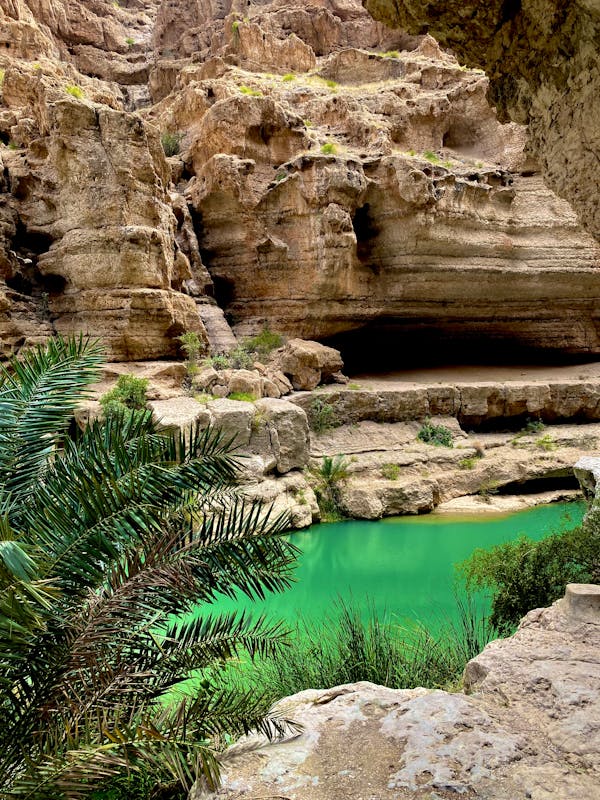 Bij Wadi Bani Khalid aangekomen, ontdekken we de heldere, diepblauwe waterpoelen die perfect zijn voor een verfrissende duik. Let op: bij het zwemmen dient u de lokale dresscode te respecteren. Mannen moeten langere shorts dragen, en vrouwen worden gevraagd langere shorts en T-shirts te dragen die het bovenlichaam bedekken. Zwemshorts of bikini’s zijn niet toegestaan.