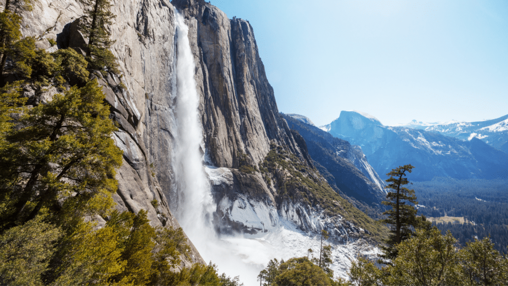 • Yosemite Falls, een van de hoogste watervallen van Noord-Amerika (vooral indrukwekkend in het voorjaar)