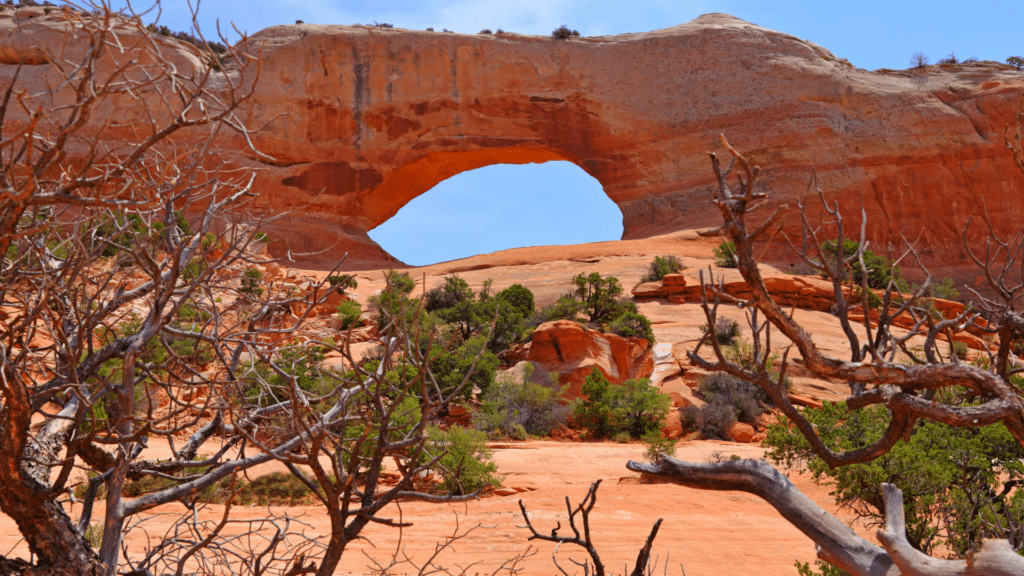 Onderweg naar Moab houden we fotostops bij o.a. Forrest Gump Point, de Valley of the Gods en Wilson Arch.