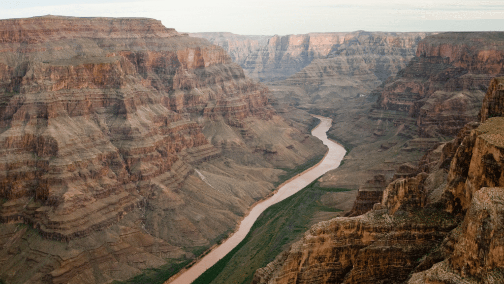 Bij aankomst aan de South Rim genieten we van een wandeling langs de rand van de canyon, met uitzicht op de kleurrijke rotslagen en de Colorado River diep beneden.